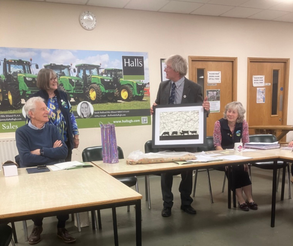 At the AGM last night SRS bid farewell to a stalwart of the organisation, Andrew Bebb, as he moves north to farm in Yorkshire. Andrew has worked tirelessly for over 20 years supporting and promoting the activities of SRS. The outgoing President, Chris Downes, presenting Andrew with a reminder of Shropshire, gave thanks for all his efforts over the years. In-coming President, Roger Parry, echoed Chris’ thanks for all the work that Andrew has done over the years. Also thanks were given to retiring Treasurer, Geoff Black, who has carefully husbanded the SRS finances for 20 years. L to R – Geoff Black, Chris Downes, Andrew Bebb and and Co-ordinator Jane Latte