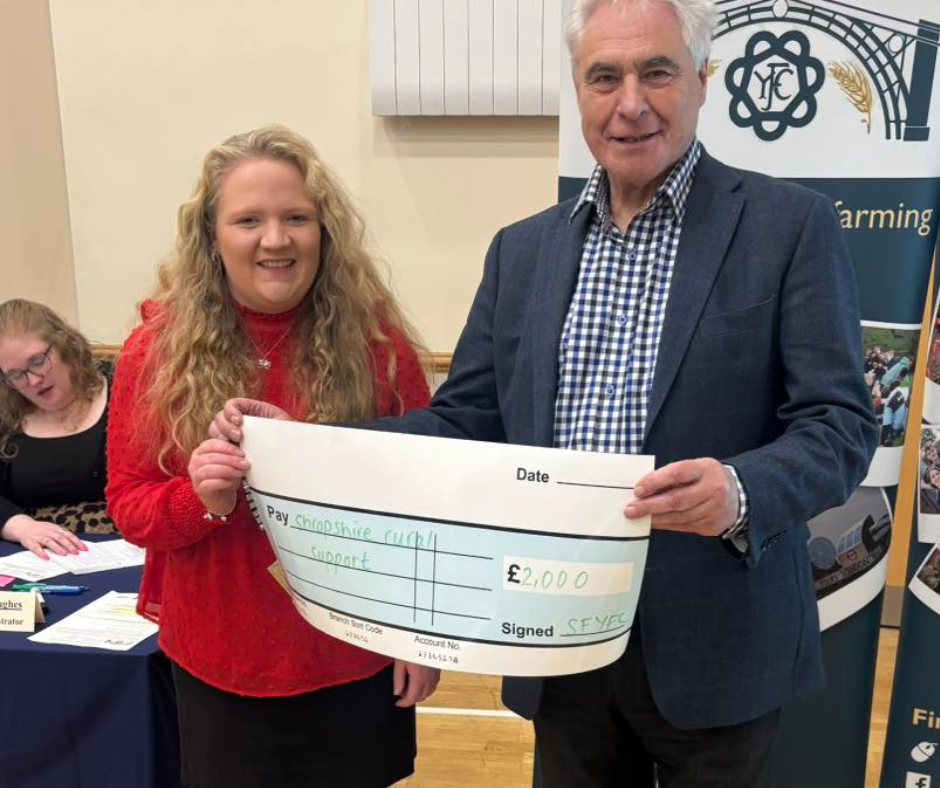 Receiving £2,000 from Shropshire YFC's Millie Preece.
